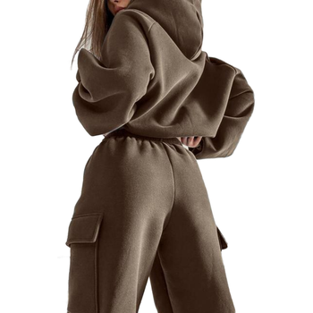 באיכות גבוהה שתי חתיכות זיעה של נשים להגדיר לוגו מותאם אישית צבע מלא שרוול ארוך coggers קפוצ 'ונים עם עליון